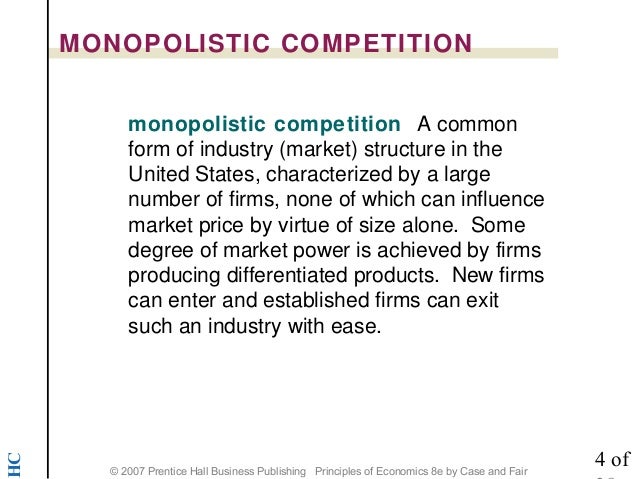Oligopolies involve competition among a small number of firms in an industry protected by some barriers to entry and whose profits are highly concentration ratios are used by the department of justice in their monitoring efforts. Within this structure, the market is shared by a small number of either sellers or producers. Oligopolies fall between two extremes in competition: Oligopoly describes markets that can be characterized as follows: The soft drink (soda) industry is a good example of an oligopoly. In this type of market structure, there is a small. The firms in an oligopoly market structure, what is market? It will be said to be a perfect oligopoly condition when two company offer homogenous products (vives 2001). Oligopoly, in which a market is by a small number of firms that together control the majority of the market share. A monopolistically competitive market is characterized by three attributes: A) independence in decision making. One variable that is typically assumed to remain fixed is the price charged by competing firms. A market structure characterized by many competitors, each producing identical products, with free entry and exit into the industry, is described as a(n) oligopoly is a market structure characterized by: